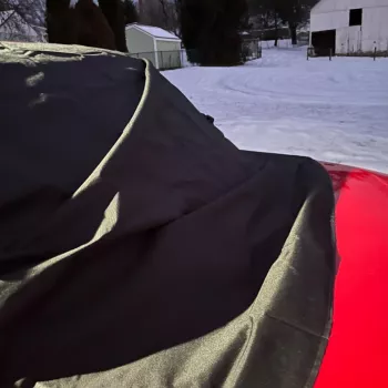 It's quick to put on and take off. It's useful for avoiding windshield scraping, and I can store it in the trunk when it's wet.
