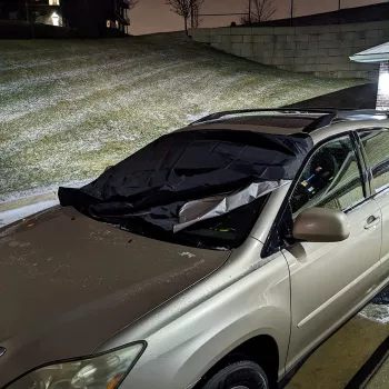 This windshield cover for cars is excellent for winter. It simplifies clearing snow and ice off the windshield. It's easy to install, remove, and store.
